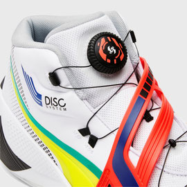 Il 2021 è il 30 ° anniversario del PUMA Disc System. Inserendo i dettagli di design del doppio Disc e dalle sagome della Disc originale, la Disc Rebirth integra la tecnologia Disc di PUMA con materiali ad alte prestazioni e schiume che riportano la Disc in campo in grande stile.